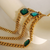 レトロなニッチライトラグジュアリースタイル象眼細工のカラフルなクリスタルレディースジュエリーパーソナライズされたステンレス鋼金メッキネックレス